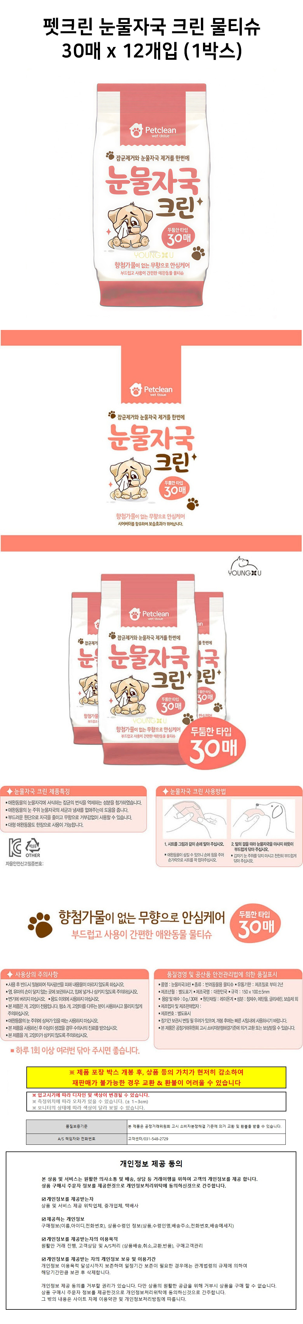 펫크린 강아지물티슈 눈물자국 크린 물티슈 30매 x 12개입 (1박스)
