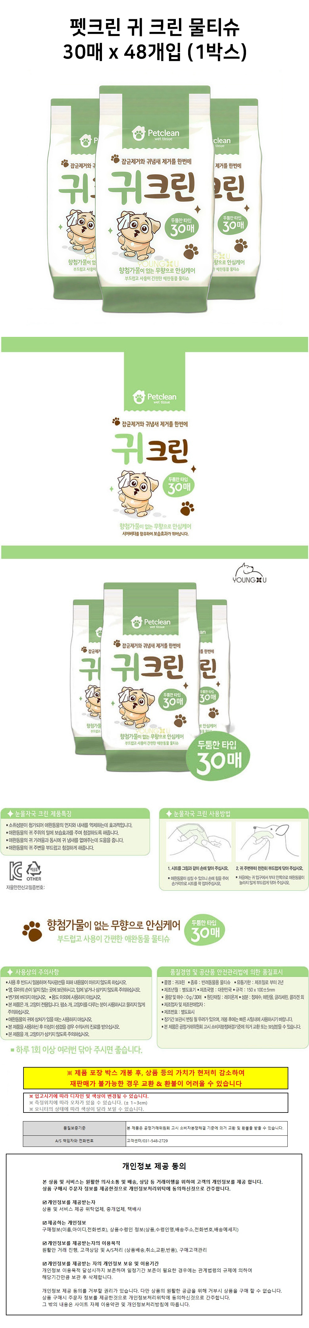 펫크린 강아지물티슈 귀 크린 물티슈 30매 x 48개입 (1박스)