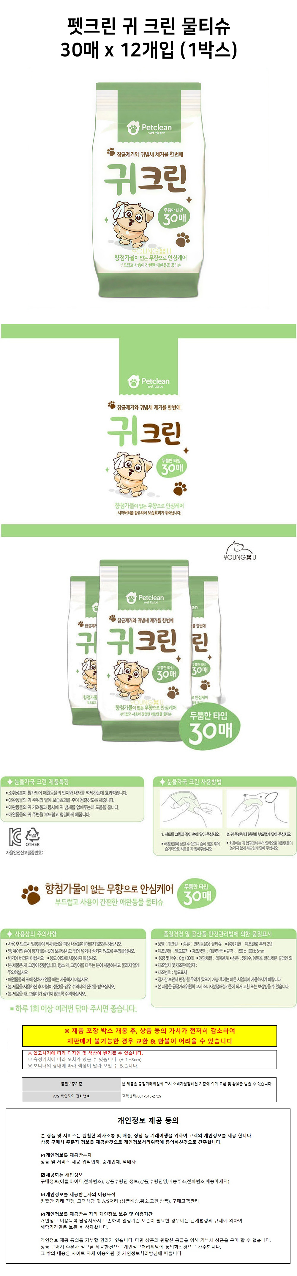 펫크린 강아지물티슈 귀 크린 물티슈 30매 x 12개입 (1박스)