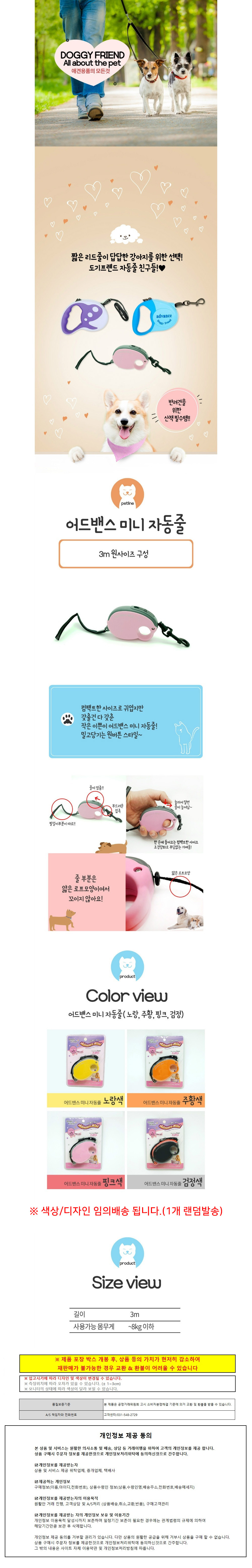 도기프렌드 강아지목줄 어드밴스 미니 자동줄 3M (랜덤1개)