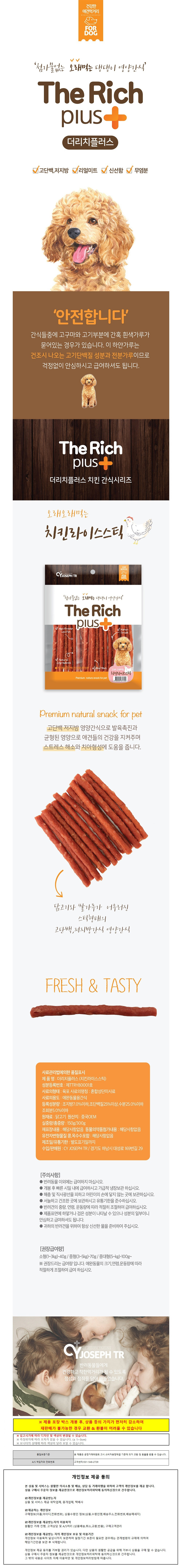더리치플러스 강아지간식 오래먹는 치킨라이스 스틱 300g