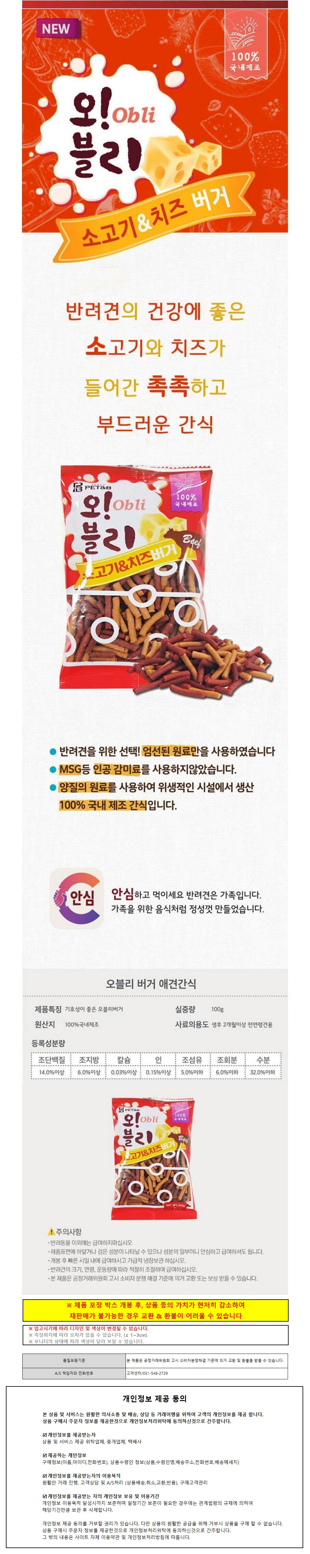 토리 애견간식 오블리 치즈버거 100g x 80개 (1박스)