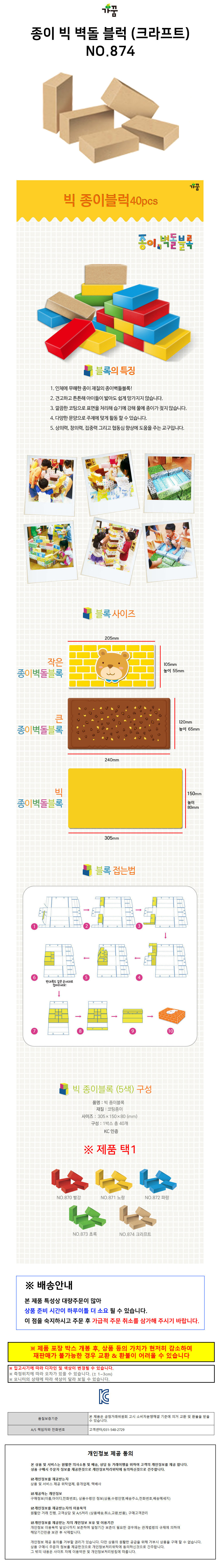 가꿈 종이블럭 빅 벽돌 블럭 40pcs (크라프트) (NO.874) 블록 블럭 완구