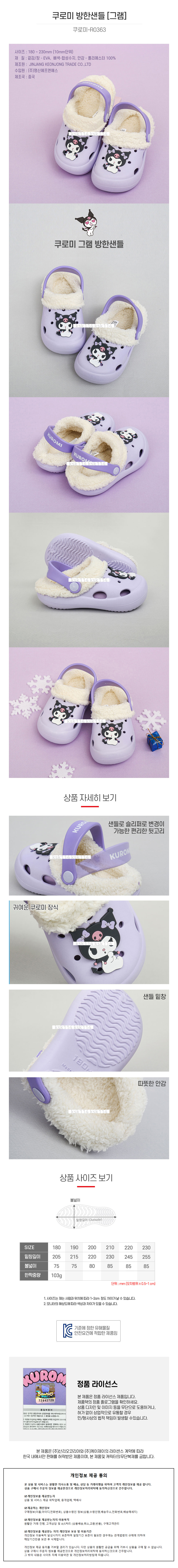 명신 털실내화 쿠로미 그램 방한 아동 샌들 (택1) 학생실내화
