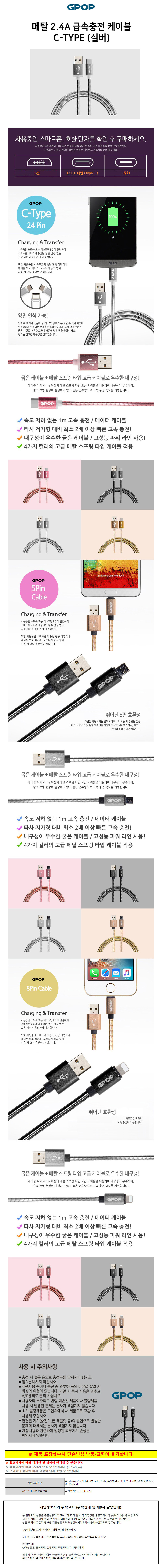 GPOP 메탈 2.4A 급속충전 케이블 (C-TYPE) (실버)