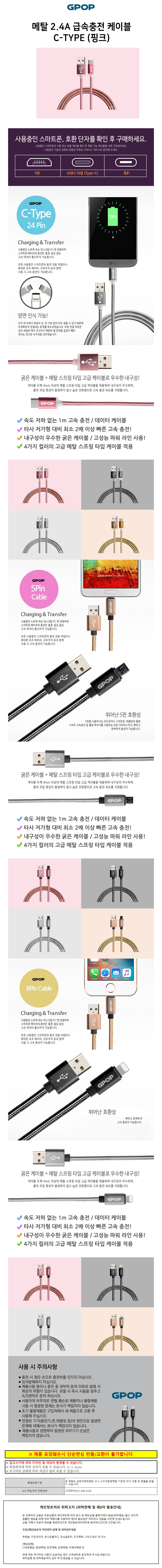 GPOP 메탈 2.4A 급속충전 케이블 (C-TYPE) (핑크)