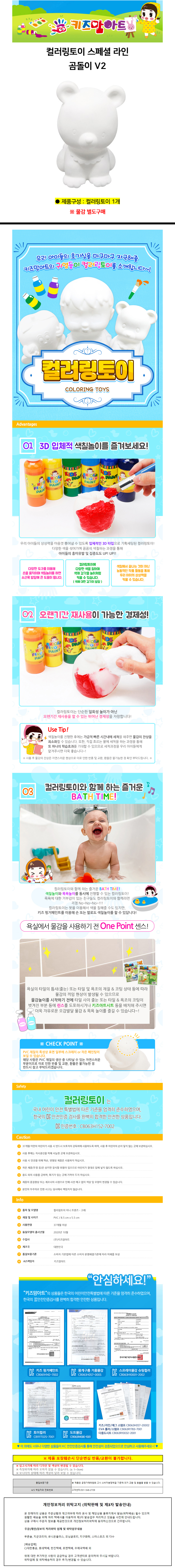 키즈맘아트 컬러링토이 스페셜 라인 (곰돌이V2) 3D 색칠놀이 (키즈 핑거페인트 물감 별도구매)