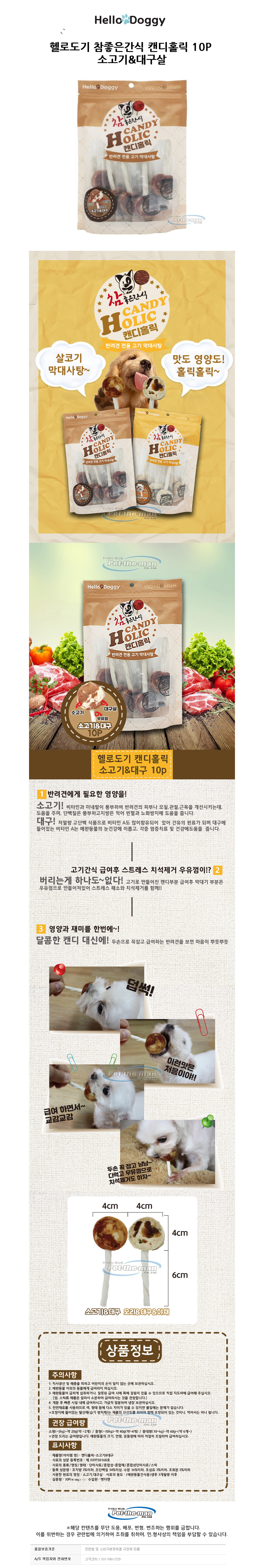 헬로도기 참좋은간식 캔디홀릭 10P (소고기.대구살) (강아지 간식)