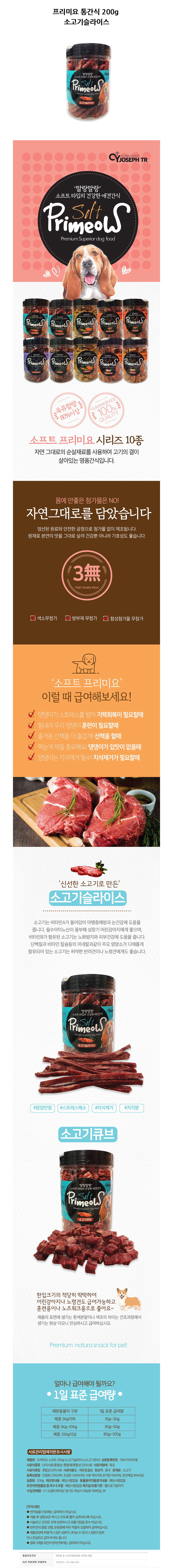 CY요셉 프리미요 통간식 200g (소고기슬라이스) (강아지 간식)