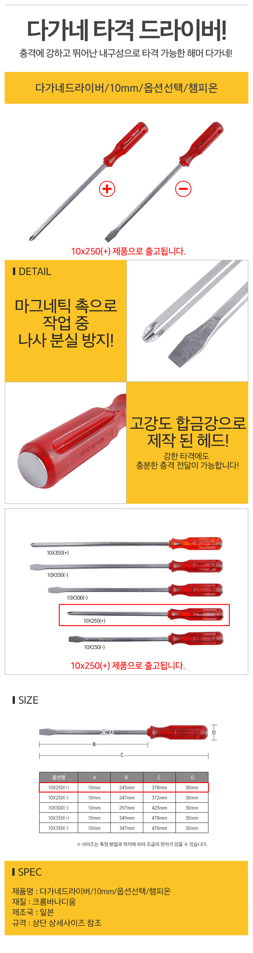 자석 다가네 드라이버 십자 10x250mm