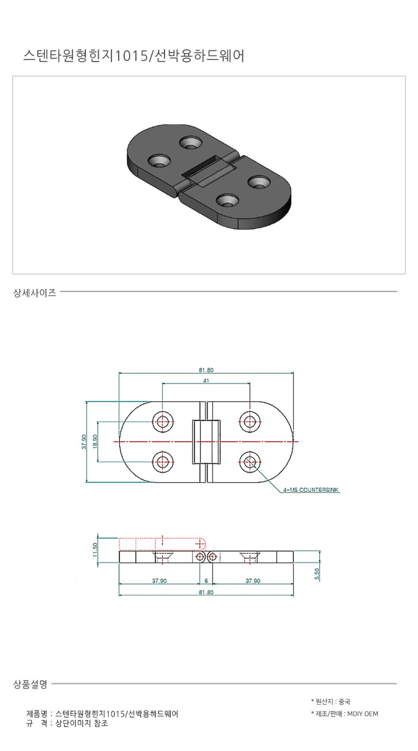 선박용 스텐 타원형 힌지 경첩