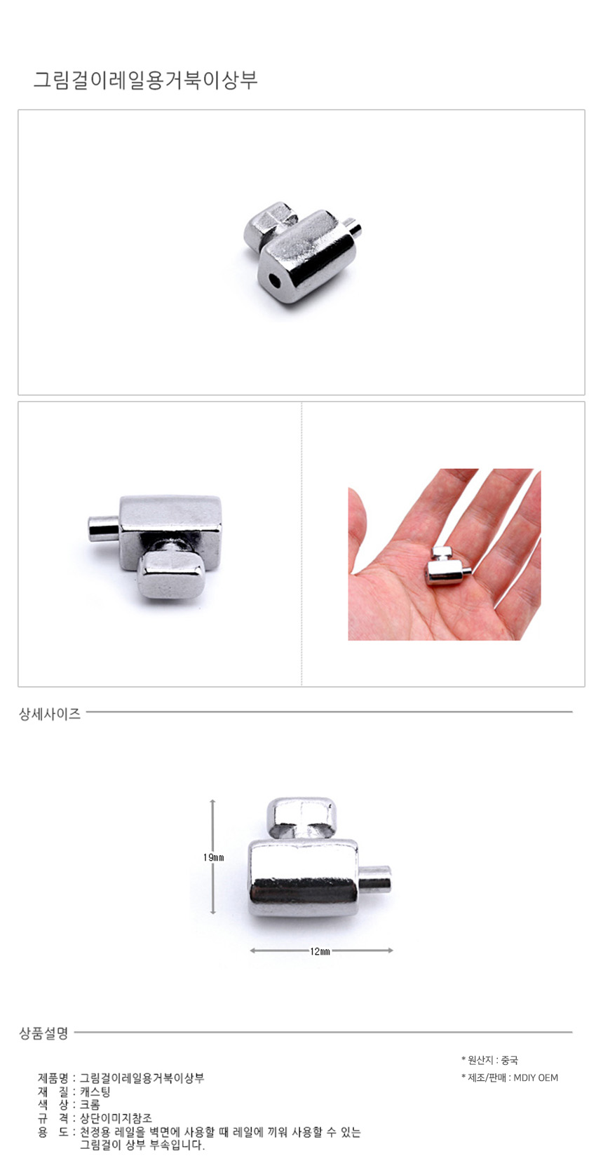 그림걸이 레일용 거북이 상부 부품