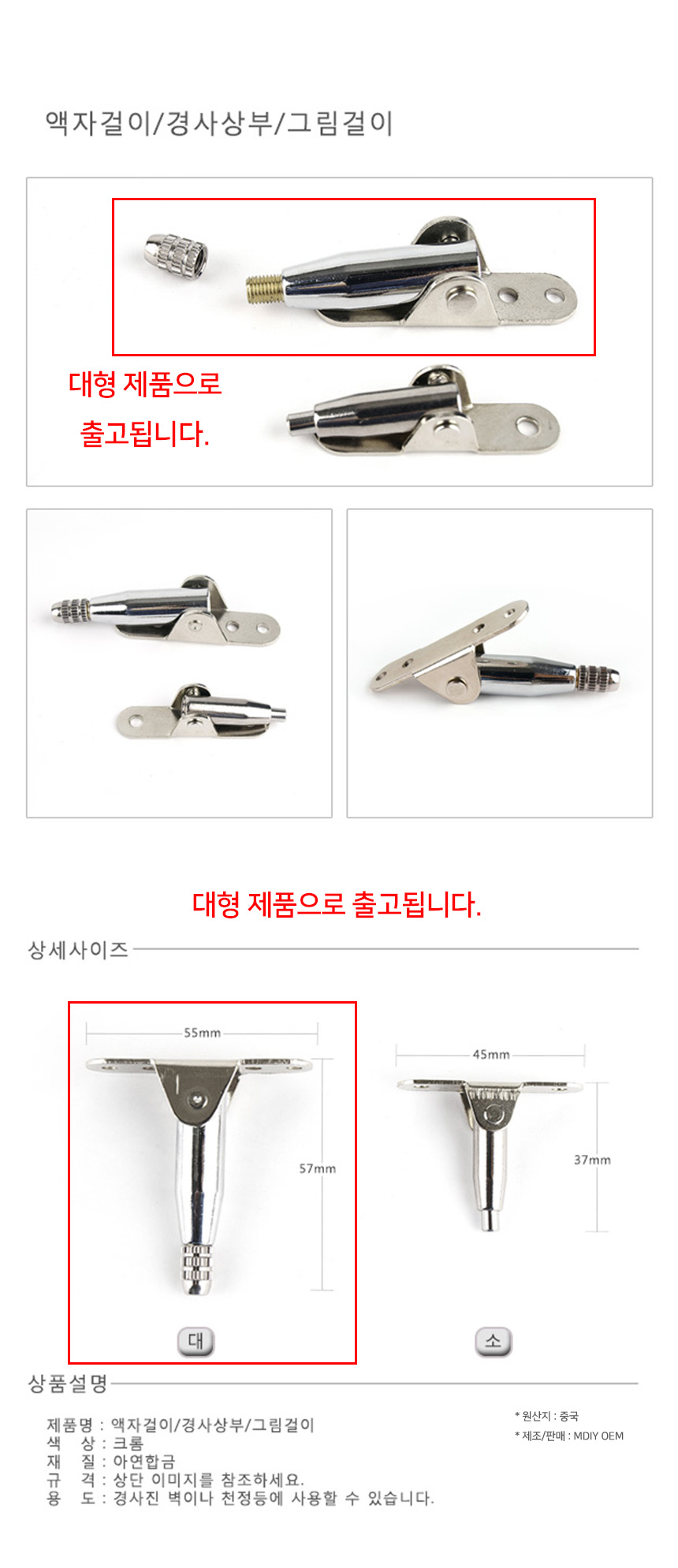 와이어 액자걸이 경사 상부 부품 대형 55mm