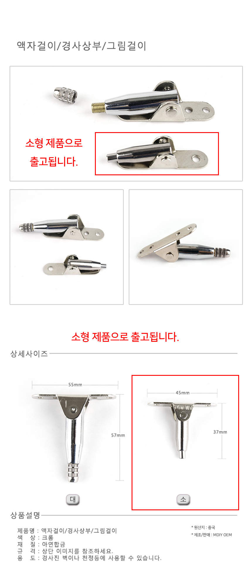 와이어 액자걸이 경사 상부 부품 소형 45mm