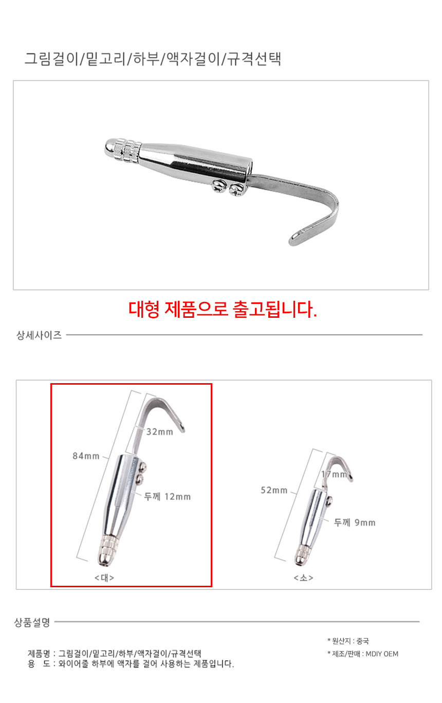 와이어 액자걸이 밑고리 하부 부품 대형 84mm