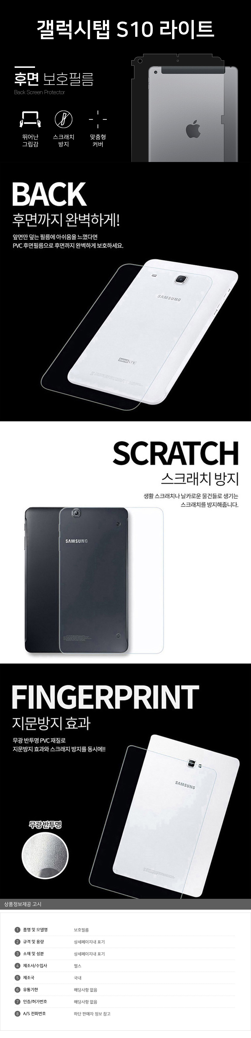 갤럭시탭 S10 라이트 후면 보호필름 1매