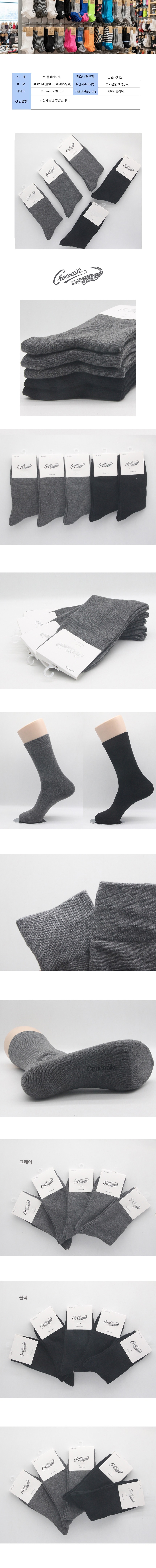 크로커다일 남성 무지 정장 양말 색상랜덤 5켤레