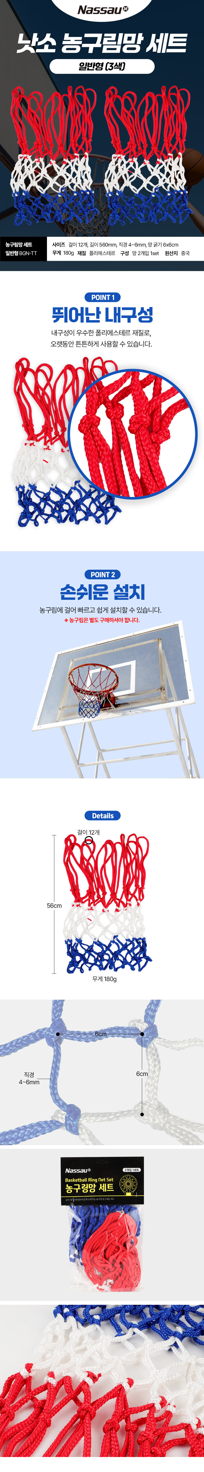 낫소 농구림망 세트 일반형 3색 2개입